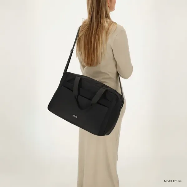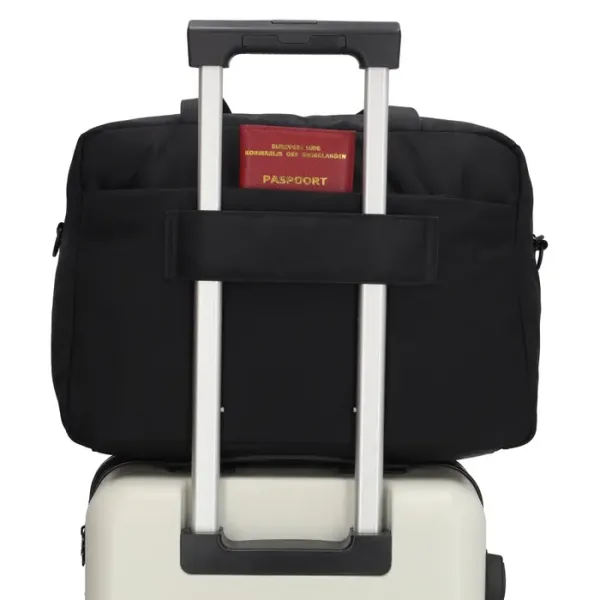 Dankzij de band aan de achterkant schuif je de tas eenvoudig over het handvat van je koffer. Met twee stevige handvaten en een verstelbare, afneembare schouderband draag je de tas op de manier die jij het prettigst vindt.