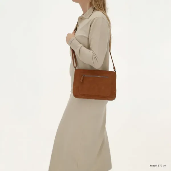 Aan de voor- en achterkant bevinden zich extra vakken met ritssluiting voor items die je snel wilt pakken. De verstelbare schouderband maakt het mogelijk de tas comfortabel over de schouder of crossbody te dragen.