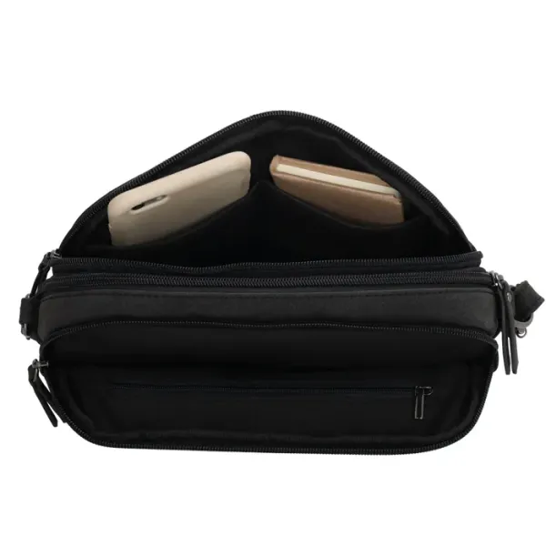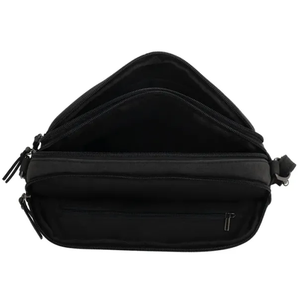 Over de hoofdvakken valt een overslag met drukker voor extra veiligheid en een stijlvolle uitstraling. Aan de voor- en achterkant bevinden zich extra ritsvakken, ideaal voor items die je snel wilt pakken.