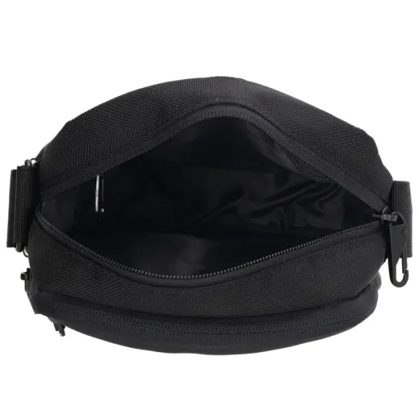 De tas beschikt over een hoofdvak met ritssluiting, waarin een klein ritsvakje zit om kleinere items veilig op te bergen. Aan de voorkant vind je twee extra ritsvakken voor spullen die je snel bij de hand wilt hebben. Aan de achterkant zit nog een ritsvak. Uniek aan deze tas is het antidiefstalhaakje waarmee je de hoofdrits kunt vastzetten voor extra veiligheid tijdens het reizen of in drukke omgevingen.