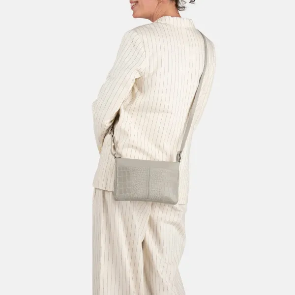 Stijlvolle leren crossbody tas met 3D-croco print, magneetsluiting, meerdere ritsvakken en verstelbare schouderband. Praktisch en elegant – perfect voor elke dag.