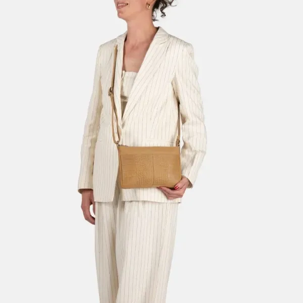 Stijlvolle leren crossbody tas met 3D-croco print, magneetsluiting, meerdere ritsvakken en verstelbare schouderband. Praktisch en elegant – perfect voor elke dag.