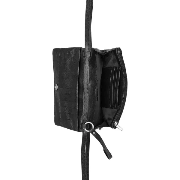 Altijd je belangrijkste spullen binnen handbereik met dit compacte BURKELY leren telefoontasje in zwart. Het strakke, effen design en de zilverkleurige hardware geven een moderne, rustige uitstraling die moeiteloos combineert met je dagelijkse outfits. Door het mini formaat neem je precies mee wat je nodig hebt, zonder een grote tas te hoeven dragen.