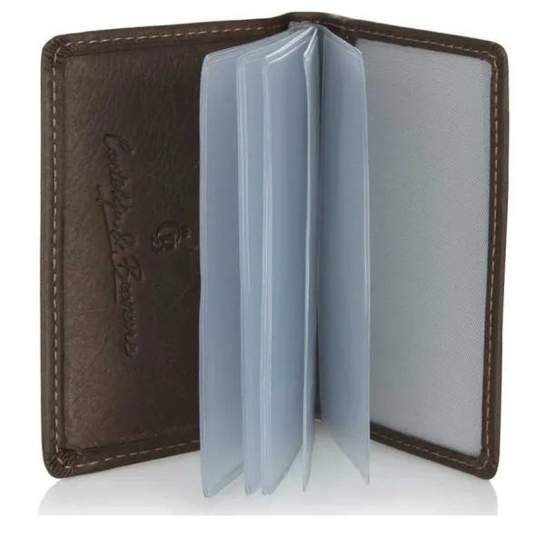 Het subtiel gepreegde C&B-logo onderstreept het natuurlijke en authentieke karakter van de collectie. Aan de binnenzijde biedt deze bruine pasjeshouder ruimte aan tien pasjes, waarvan negen vakken transparant zijn. Zo houdt u al uw pasjes overzichtelijk en altijd binnen handbereik.