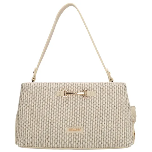 De Charm London Santorini Schoudertas is een stijlvolle tas met een zomerse riet look en een praktische indeling. De tas sluit met een rits zodat je je spullen veilig opbergt en alles netjes op zijn plek blijft.