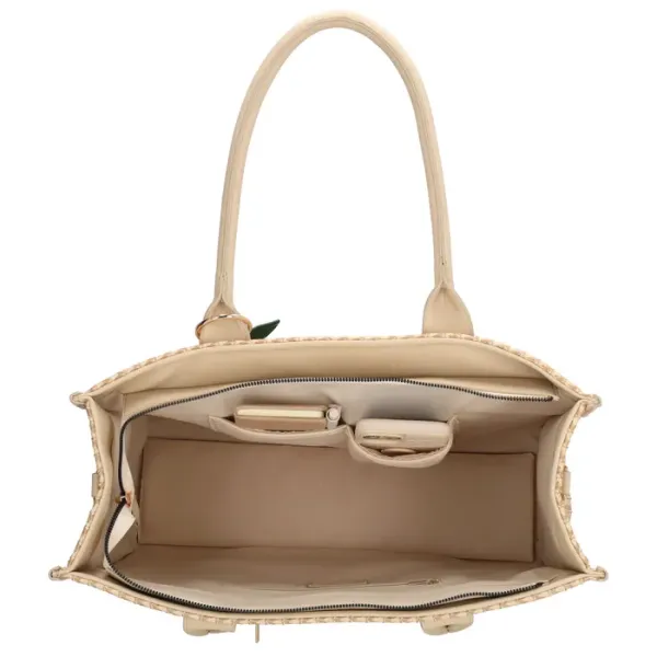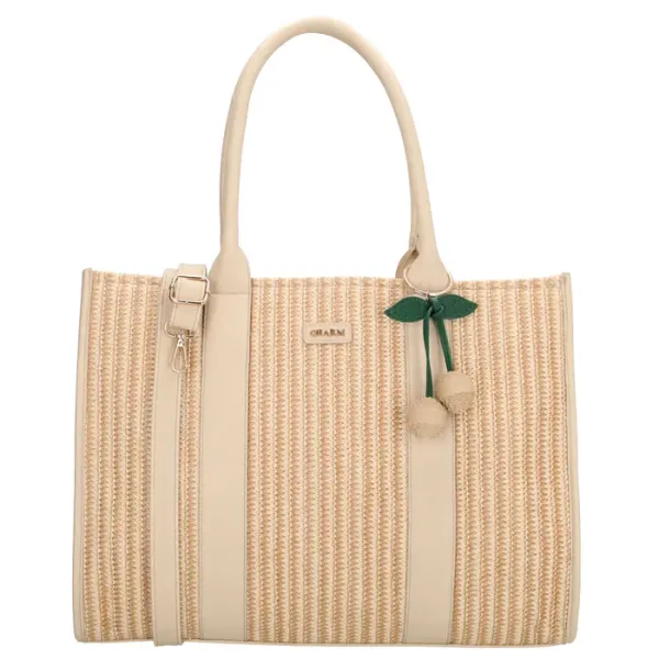 De Charm London Bermondsey Shopper is een ruime en praktische shopper met een stijlvolle riet look uitstraling. Dankzij het royale formaat is deze tas ideaal om al je dagelijkse spullen overzichtelijk mee te nemen. De shopper is geschikt voor diverse momenten zoals een dagje weg of onderweg naar werk of stad.