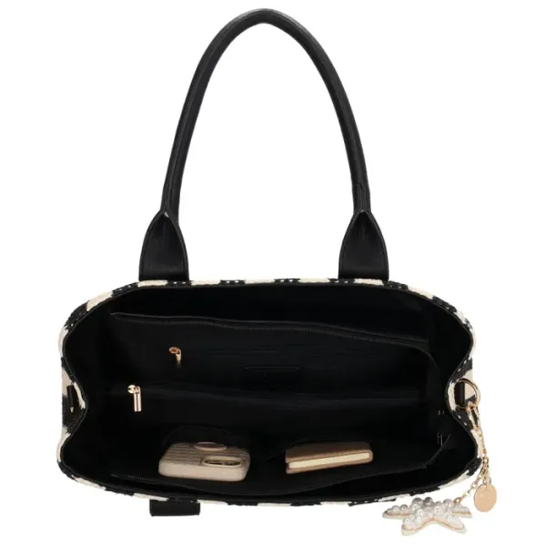 Aan de achterkant bevindt zich een extra ritsvak voor items die je graag snel wilt pakken. De verstelbare en afneembare schouderband geeft je de vrijheid om de shopper ook comfortabel crossbody te dragen. Als speelse finishing touch is de tas voorzien van een bag charm met een zeester die de zomerse look compleet maakt.