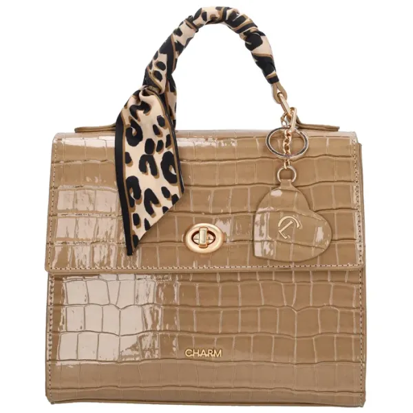 De Charm London Knightsbridge Handtas is een stijlvolle handtas met een glanzende croco laklook en verfijnde details. Dankzij het compacte ontwerp en de elegante afwerking is deze tas perfect voor een dagje uit of een diner in stijl.
