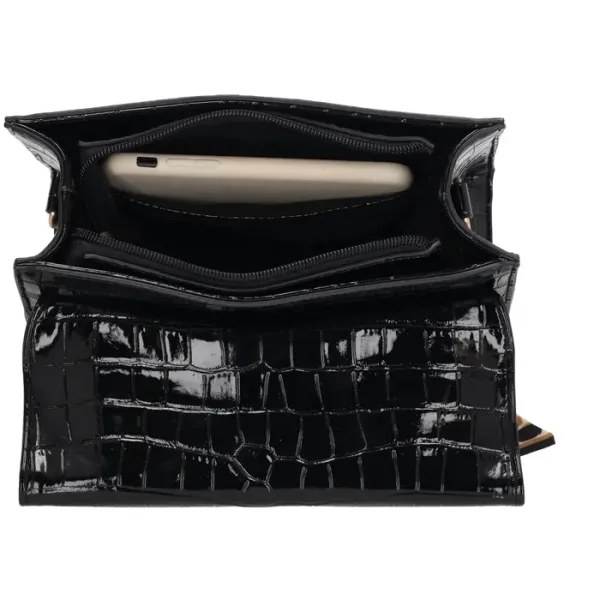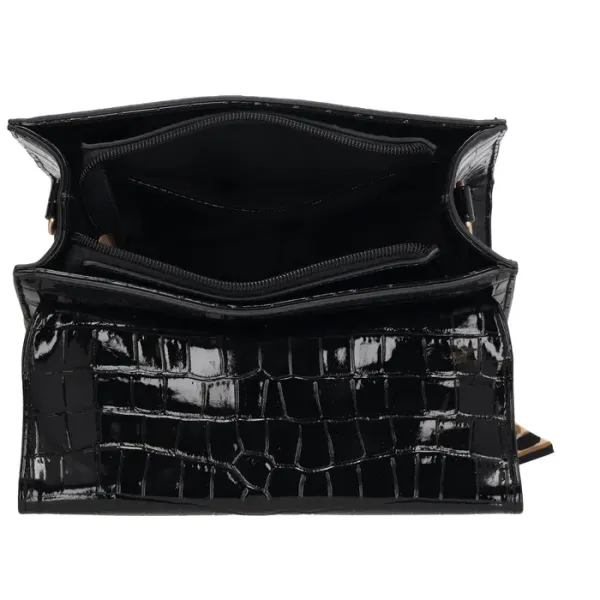 De Charm London Knightsbridge Handtas is een stijlvolle handtas met een glanzende croco laklook en verfijnde details. Dankzij het compacte ontwerp en de elegante afwerking is deze tas perfect voor een dagje uit of een diner in stijl.
