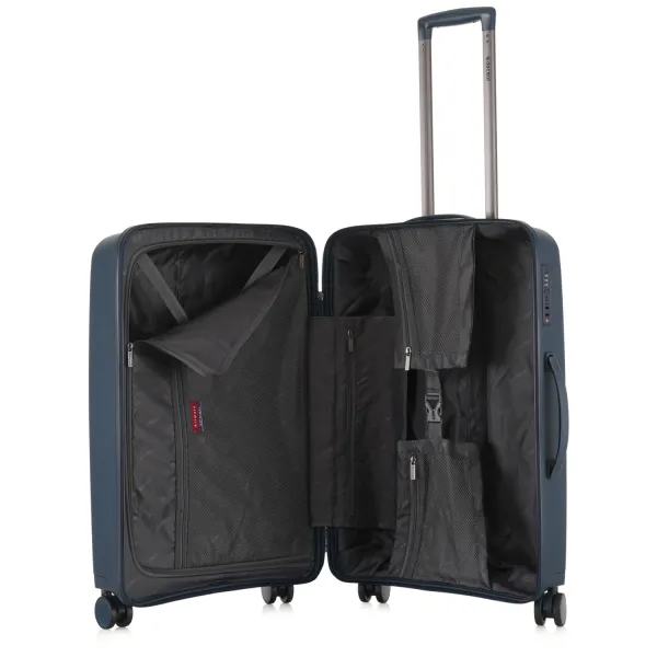 Dankzij het TSA-cijferslot en de vaste sluiting reis je veilig en zorgeloos. De vier soepele zwenkwielen en de telescopische trekstang zorgen voor optimaal comfort onderweg.