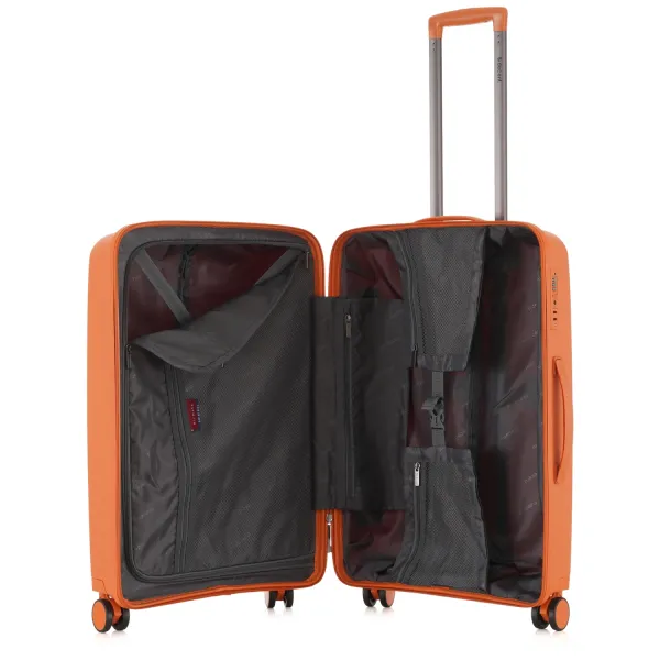 Dankzij het TSA-cijferslot en de vaste sluiting reis je veilig en zorgeloos. De vier soepele zwenkwielen en de telescopische trekstang zorgen voor optimaal comfort onderweg.