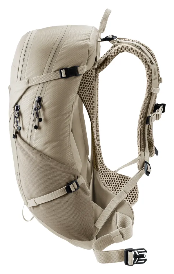 De lichtgewicht en functionele Futura 21 SL van deuter is speciaal aangepast aan de anatomie van een vrouwenlichaam. Met een kortere rug, smallere schouderbanden en conisch gevormde heupvinnen zit deze SL rugzak comfortabel op de rug. Het nieuwe Aircomfort rugsysteem met mesh in een nieuwe stijl zorgt voor maximale ventilatie van de rug tijdens sportieve wandeltochten. De Futura 21 SL zit boordevol praktische features, waaronder twee elastische zijvakken, een afneembare regenhoes, een binnenvak voor waardevolle spullen en een voorvak met organiser. Deze Futura rugzak is gemaakt van een garen dat voor 50% gerecycled is, wat gelijkstaat aan 12% minder CO2 uitstoot. Het hoofdmateriaal is ook nog eens 100% bluesign® gecertificeerd. Bluesign® is ’s werelds strengste standaard op het gebied van milieubescherming, beroepsveiligheid en consumentenbescherming in de textielindustrie. En net zoals alle deuter rugzakken, is ook de Futura 21 SL volledig vrij van PFC.