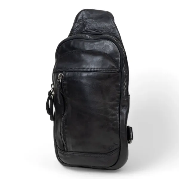 Deze elegante crossbodytas van hoogwaardig zwart leer combineert luxe met functionaliteit. Met haar slanke formaat biedt ze precies genoeg ruimte voor al je dagelijkse essentials.
