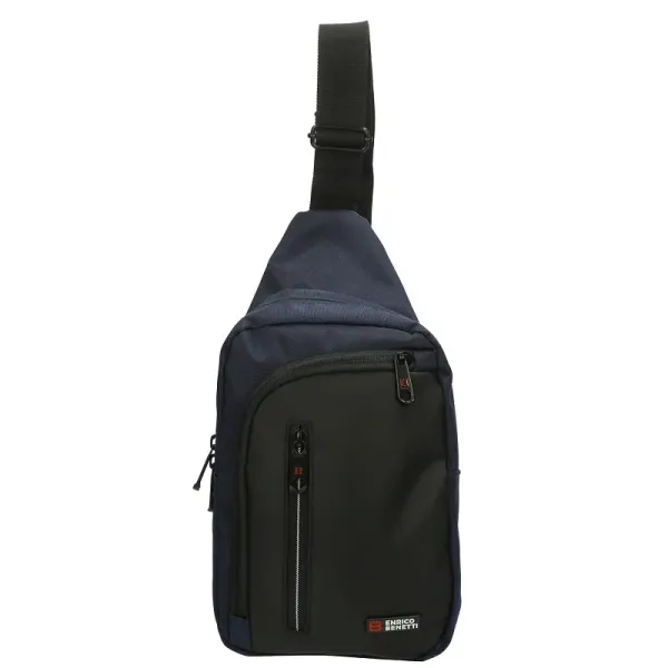 Een prachtige, trendy en unieke crossbodytas van Enrico Benetti in een mooie zwarte kleur met zwarte details die bij iedereen past. Deze tas heeft een kleiner ritsvak aan de voor- en achterkant, evenals een groter ritsvak aan de voorkant met een klein vakje. De tas opent met een rits naar een groot compartiment met een ritsvakje aan de ene kant en een groot vak aan de andere kant. Er is ook een haakje waaraan je bijvoorbeeld sleutels kunt bevestigen. De mooie schoudertas is gevoerd met een comfortabel materiaal dat tegen het lichaam aanligt en heeft een verstelbare schouderband. Perfect om schuin te dragen wanneer je onderweg bent.