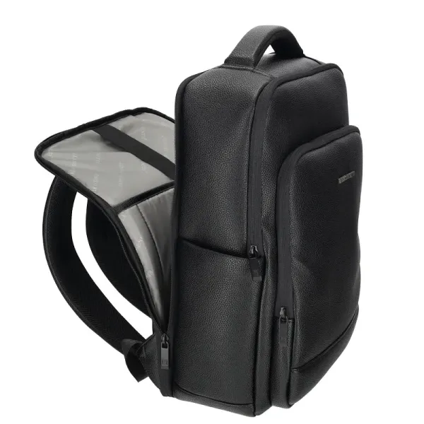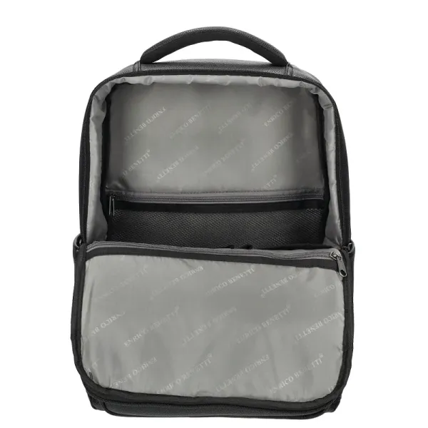 Stijlvolle laptoprugzak uit de Siena-serie van Enrico Benetti. De rugzak beschikt over twee ruime hoofdvakken die beide sluiten met een ritssluiting. Het achterste hoofdvak is speciaal geschikt voor het veilig opbergen van een laptop tot 17 inch. In het voorste hoofdvak is voldoende ruimte voor al je dagelijkse spullen. Daarnaast bevinden zich hier twee extra ritsvakken, ideaal om kleinere items overzichtelijk te organiseren.