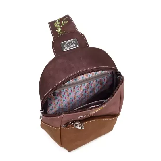 🌿 De brede schouderband is versierd met een subtiel evergreen-borduursel en zit zo comfortabel dat je hem moeiteloos meeneemt op lange wandelingen.