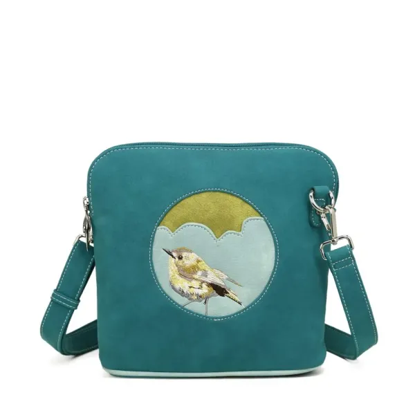 Vernoemd naar het charmante geborduurde puttertje op de voorkant, wandelt Lucky Bird over een patchwork landschap van heuvels, waardoor je tas verandert in een klein tafereel op zich. Met twee vakken met ritssluiting, drie binnenvakken en een verstelbare schouderband blijven je essentials netjes georganiseerd, terwijl de tas een speelse en dromerige uitstraling aan je outfit toevoegt.