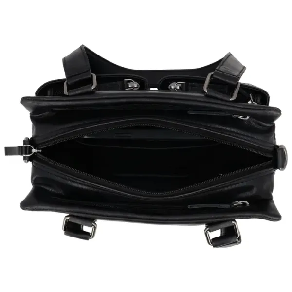 Aan de voorkant zitten drie extra ritsvakken, ideaal voor kleinere spullen die je snel bij de hand wilt hebben. De tas draag je comfortabel aan de twee handvaten of met de verstelbare en afneembare schouderband. Het compacte formaat maakt de tas perfect voor dagelijks gebruik, zonder in te leveren op functionaliteit.