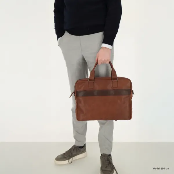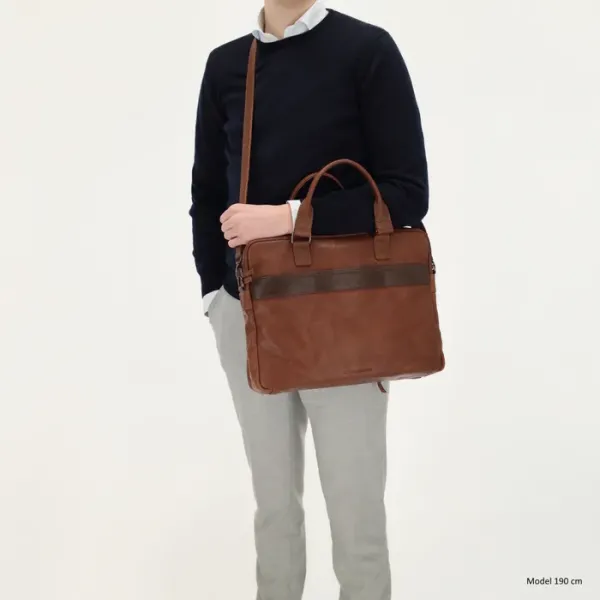 De Donau laptoptas heeft dubbele leren handvatten en wordt geleverd met een verstelbare, afneembare schouderband voor optimaal draagcomfort.