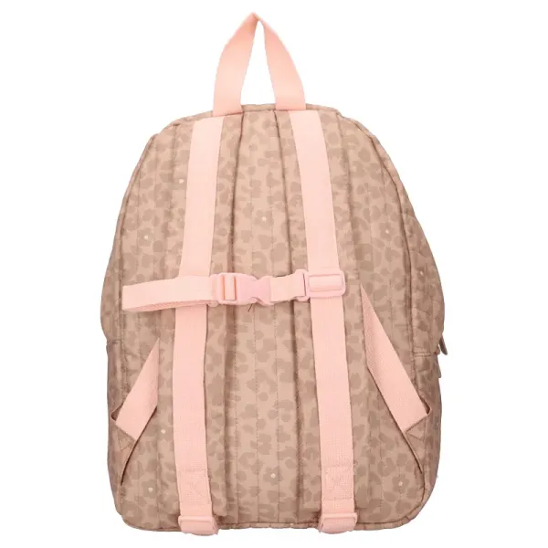 De Kidzroom rugzak uit de Magical Meadows collectie is een stijlvol en praktisch item voor ieder assortiment kinderaccessoires. Deze beige kinderrugzak met all-over panterprint heeft een afmeting van 37 x 26 x 12 cm en een inhoud van 11,5 liter, waardoor er voldoende ruimte is voor schoolspullen, een lunchbox of een extra setje kleding. De rugzak beschikt over een ruim hoofdvak met dubbele ritssluiting, een voorvak met rits voor kleinere essentials en verstelbare schouderbanden voor optimaal draagcomfort. Daarnaast is de tas voorzien van veiligheidsgespen, wat zorgt voor extra gebruiksgemak en een stevige sluiting.
