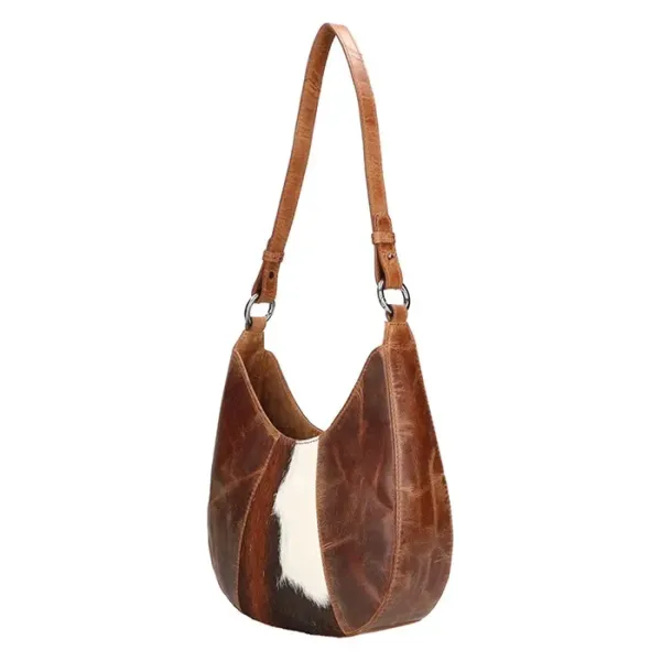 Leather Design Schoudertas Moonshape Hairon Bruin