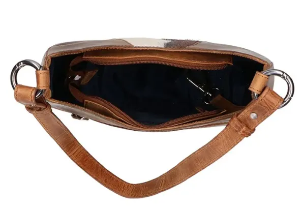 Leather Design Schoudertas Moonshape Hairon Bruin aantal