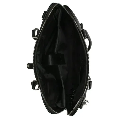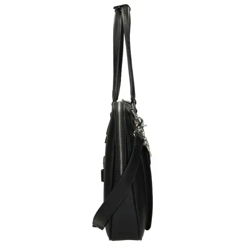 Deze elegante laptoptas uit de Onyx‑serie van Olivia Lauren combineert een classy uitstraling met praktische details. De zilverkleurige hardware geeft de tas een luxe touch, terwijl de meerdere vakjes aan de voorkant zorgen voor een uniek en speels design. Het stevige polyurethaan materiaal geeft de tas een solide en duurzame feel.