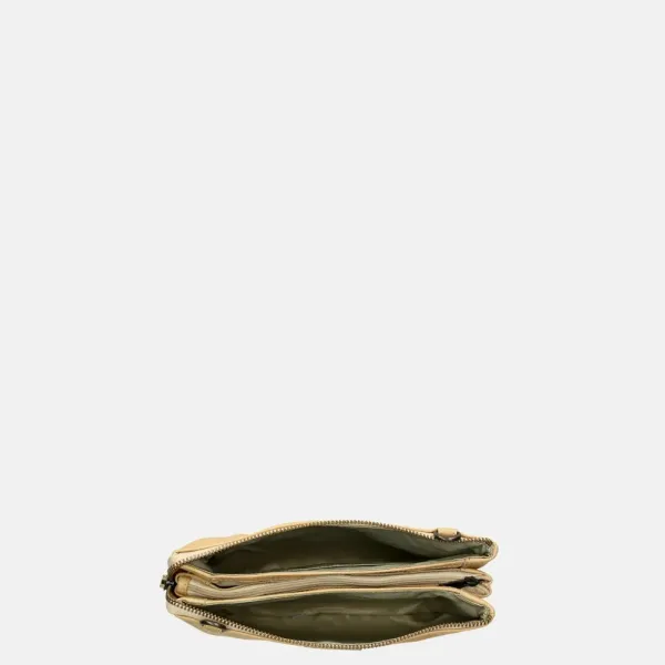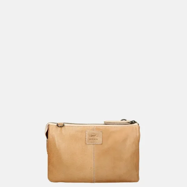 Handige, kleine leren crossbodytas uit de Cow Lavato serie van Bear Design. De tas is afsluitbaar met een rits. Binnenin zit een drievaks indeling. De buitenste vakken zijn steekvakken en het middelste vak heeft een ritssluiting. In de tas kun je 6 pasjes kwijt en binnenin zit ook een extra ritsvakje. Met de afneembare verstelbare schouderband kun je de tas op de door jou gewenste lengte dragen. Met de afneembare polsband kun je deze tas ook als clutch dragen.