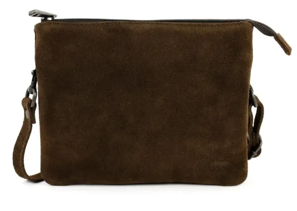 Klein tasje uit de Suëde collectie met 2 vakken waarvan 1 vakje met een rits,ook als clutch te gebruiken.